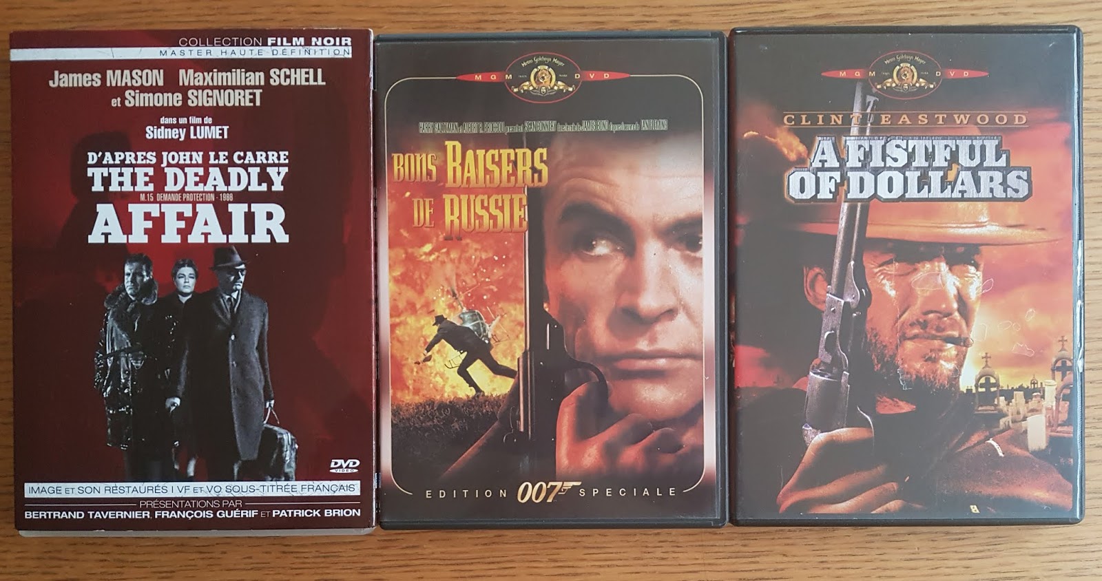 DVD Movies : 66"The Deadly Affair"(??"-Collection Film Noir-Sidonis/Calysta-France); 63"Bons Baisers de Russie"(00"-Edition 007 Spéciale-MGM-France); 64"A Fistful of Dollars"(99"-MGM-USA); 86"King Kong 2"(??"-Edition Spéciale-??-France); 85"Invasion USA"(05"-MGM-France); 87"260 Chrono"(??"-DVD Video-France); 96"Tesis"(??"-Boomerang Pictures-Benelux); 89"Hellraiser II"(06"-DVD a la Une-France); 05"The Eye 3"(??"-Wild Side-France).