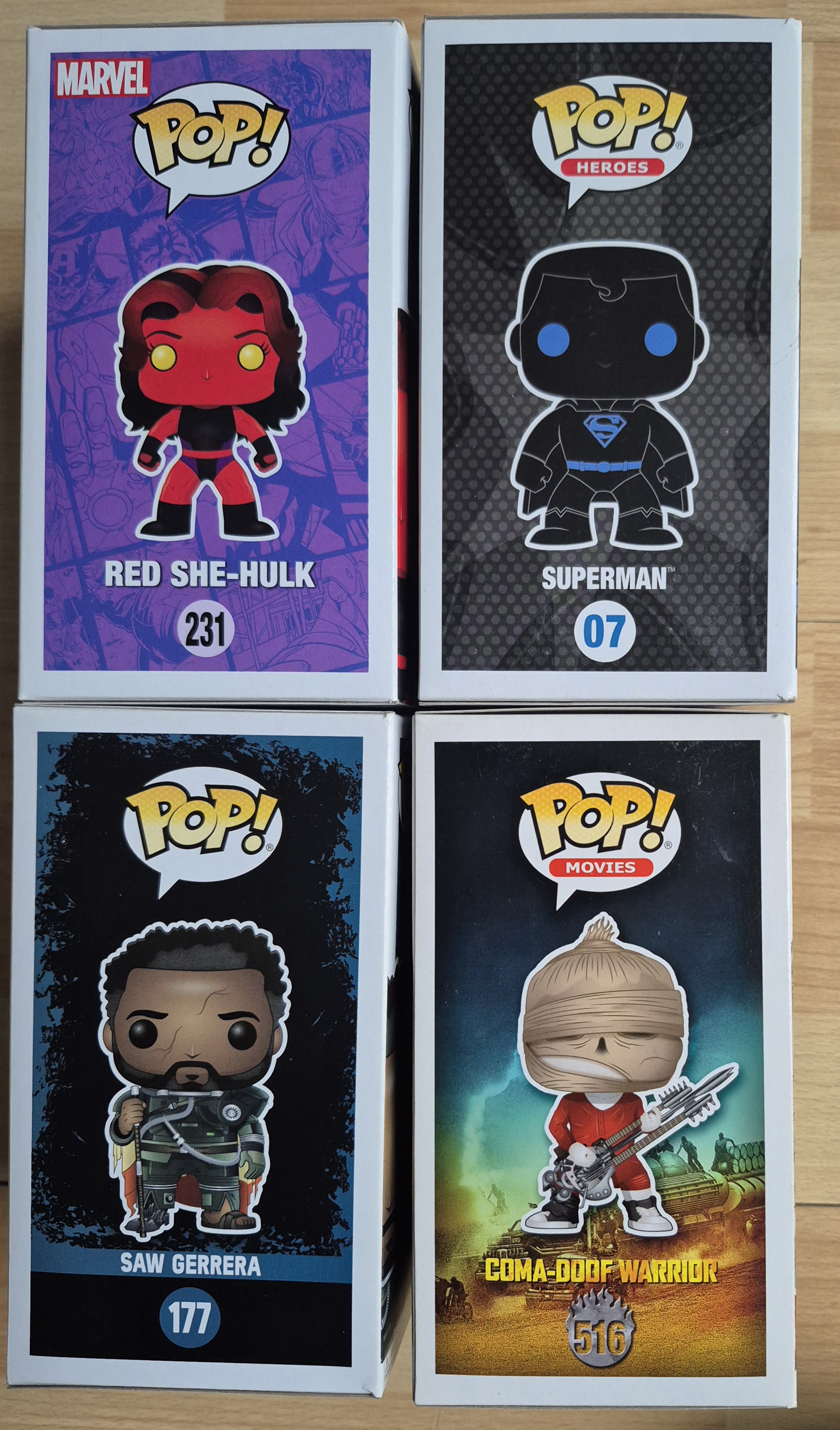 Toyz : FUNKO POP Red She-Hulk 231 (from Marvel Line- 2017 Summer Convention Exclusive)- FUNKO POP Superman 07 (from Heroes Line- Entertainment Earth Exclusive)- FUNKO POP Red Saw Gerrera 177 (from Star Wars Line- 2017 Fall Convention Exclusive)- FUNKO POP Coma-Doof Warrior 516 (from Movies Line).